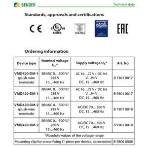 رله های ولتاژی سری VMD420 بمنظور مانیتور موارد ذیل طراحی شده اند: